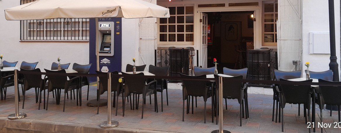 It enjoys an outside large terrace area, sun soaked till late in the day, shaded by umbrellas if required. A five minuet walk from the Fuengirola train station & Bus Station, large amount of hotels, apartments & Restaurants surround this cafe bar.